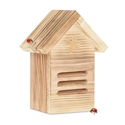 AmazonSpecies protection: Insect house serves as a helpful shelter and hibernation aid for ladybirds Material: Ladybird hotel made of FSC-certified fir wood - With side flap for filling Learning effect: For children and adults, the lacewing box offers great observation opportunities Garden: Hang up the ladybird house in a weather-protected plac Basics: Insect hotel Dimensions H x W x D: approx. 23 x 17 x 12 cm - 3 entrance slits