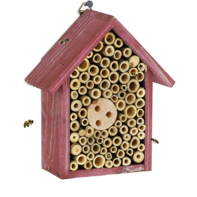 Insect hotels are becoming more and more important for the survival of insects. The increasing urbanisation of our landscape is making it more difficult for bees to find suitable nesting sites. With a bee nesting box, you actively contribute to the protection of species. The bamboo tubes are often used by different types of bees and wasps. Hang the insect hotel in your garden or place it on your balcony and watch the fascinating wildlife. Insect hotel in detail - Dimensions H x W x D: approx. 20 x 17 x 8.5 cm - Bamboo tubes Ø: approx. 0.4 - 1.2 cm - Weight: approx. 0,5 kg - Material: Fir wood, bamboo - Colour: Red, nature Beneficial insect hotel for the garden - For bees and wasps and other insects - Bamboo tubes as natural nesting aid - Attracts beneficial pollinators to your garden - Great observation opportunity for children and adults - Suitable for hanging or standing - Insect hotel made of FSC-certified wood How to bring life into your insect house - Provide enough food with