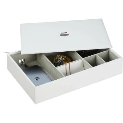 Relaxdays Jewellery Box, Storage with Compartments & Lid, HxWxD: 7 x 32 22 cm, Leather Look, Dressing Table, White, Fibreboard