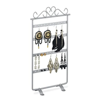Relaxdays Jewellery Stand, Earrings Storage, H x W D: approx. 30.5 16.5 6.5 cm, Metal, Silver, Iron