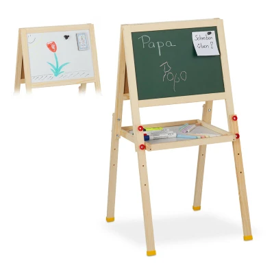 Relaxdays Kids’ Easel, Two Sided, Magnetic, Height Adjustable, HWD 77x39x44.5 cm, Whiteboard & Chalkboard, Natural, Wood, 77 x 39 44.5 cm