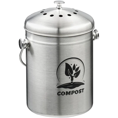 General description This small kitchen compost bin is perfect for collecting organic waste. Made from sturdy stainless steel, it features a stylish vintage design that adds a decorative touch to your kitchen. The bin is equipped with a removable lid that includes an activated carbon filter to effectively prevent unpleasant odours, making it ideal for temporary storage of food waste. Technical specifications Dimensions (H x W x D): approx. 29 x 21 x 18.5 cm Volume: approx. 5 litres Odour filter diameter: approx. 12 cm Weight: approx. 920 g Material: Stainless steel, charcoal Usage Ideal for collecting organic waste in the kitchen Easy to transport using the handle and knob Smooth interior surfaces allow for quick cleaning Includes two activated carbon filters for odour control