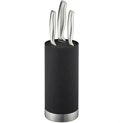 Relaxdays Knife Block, Empty, Round Blade Storage, with Bristles, HxD: 22 x 11 cm, Universal Holder, Organiser, Black, Plastic Stainless Steel