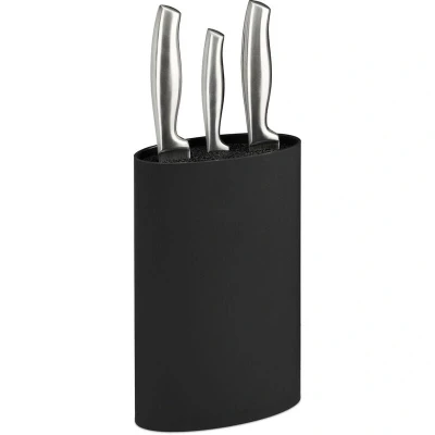 Relaxdays Knife Block Oval Holder Unequipped, Storage with Bristles, H x W D: 22 16.5 6.5 cm, Black