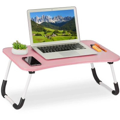 Relaxdays Lap Desk, for Bed & Sofa, Folding Laptop Tray, HWD: 26 x 63 40 cm, MDF Iron, Notebook Table, Pink, Fibreboard, Plastic