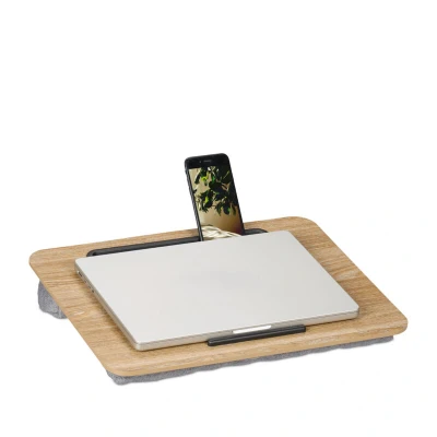 Amazon MarketplaceComfortable: The laptop cushion is ideal for comfortable working and surfing in bed or on the couch Comfort: With built-in anti-slip pads - For ergonomic and comfortable working at home Storage: The practical holder in the lap desk keeps your smartphone and tablet always within reach. Design: The lap tray boasts soft padding and a stable MDF surface in a wood finish Useful info: Durable laptop cushion for devices up to 16 inches - Size HxWxD: 6 x 42 x 32 cm
