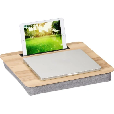 General description The Relaxdays Laptop Bed Tray with Cushion is the ultimate companion for productive and cozy hours at home. This versatile lap tray allows you to work comfortably from your bed or sofa, featuring a large surface for laptops and notebooks up to 17 inches. It also includes an integrated holder for your mobile phone or tablet, making it perfect for enjoying your favorite series in comfort. Technical specifications Dimensions (H x W x D): approx. 5.5 x 46 x 35 cm Mobile phone holder dimensions (W x D): approx. 25 x 1.5 cm Weight: approx. 0.9 kg Material: MDF, linen, foam Usage Ideal for comfortable working in bed or on the sofa Soft cushion with foam filling ensures maximum comfort while resting on your legs Integrated holder for smartphone and tablet for added convenience