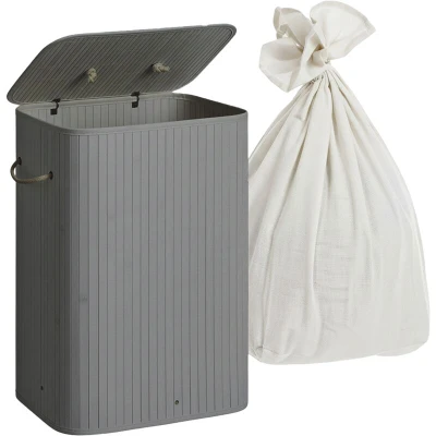 Relaxdays laundry hamper with lid, bamboo, 80 litres, foldable, HxWxD: 60 x 40 30 cm, grey