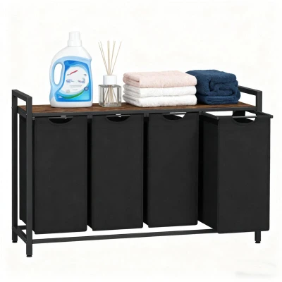 Relaxdays laundry organiser with 4 removable bags and shelf, H x W D: 72 116 33 cm, black brown