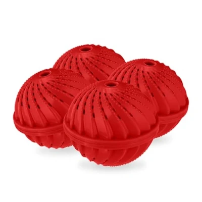 Relaxdays Laundry, Set of 4, Machine, Without Detergent, Eco Friendly, Washing Ball, Red, 9 x 10.5 cm