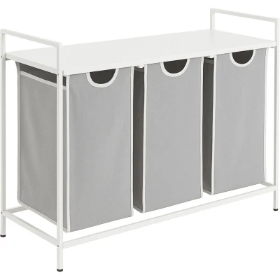 Relaxdays laundry sorter with 3 removable bags, shelf, HWD: 72x92.5x33 cm, metal basket, white/grey