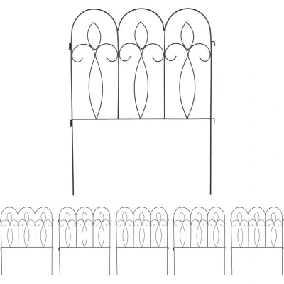 General description Are you looking for a quick way to transform your garden and create visually pleasing areas? Then this Relaxdays lawn edging is just the thing for you. Mark out borders between lawns, flowerbeds, and paths with this low decorative fencing. The sleek yet decorative style makes this metal border a real focal point in any garden. Technical specifications Dimensions per component: H x W x D: approx. 81 x 63 x 1 cm Total length: approx. 376 cm Height (above the ground): approx. 48 cm Weight per panel: approx. 900 g Material: Iron Colour: Black Installation Simply push the 6 panels into the soil using the ground stake. The border can be set up as required. Usage Create clear and neat borders in your garden. Perfect height for flowerbeds, lawns, and other green areas. Decorative design with swirl embellishments. Other information Included in delivery: 6 x mini fence elements. Decorative items are not included in delivery.