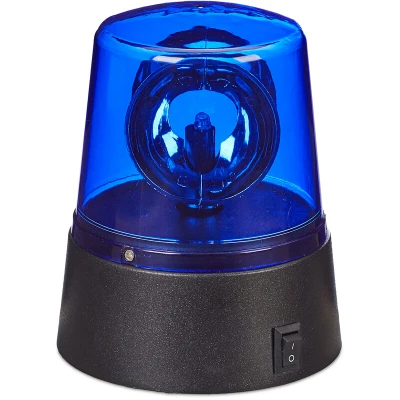 AmazonEyecatcher: Create an unforgettable party with this blue LED strobe light Flexible: Great special effect lighting for carnival or theme parties - For small and big police officers Reflector: Hard to oversee this light with the 360 degrees rotating reflector Battery-operated: Battery-operated with 3 AA batteries (not included) - No cables clutter Basics: Dimension LED siren light H x D: 11.5 x 9.5 cm - Made of PS and ABS - With side switch