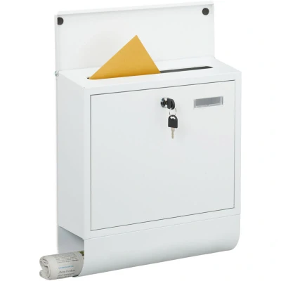 Relaxdays letterbox with nameplate, 4 keys, newspaper holder, postbox, HxWxD: 41.5 x 37.5 14 cm, metal, white, Iron