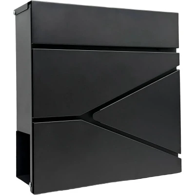 AmazonGenerous: letterbox with newspaper compartment and slot for mail up to DIN C4 format Weatherproof: Sturdy wall-mounted mailbox made of powder-coated iron in black – includes rain cover Secure: Lockable postbox with front lock - 4 keys for family members Practical: Wall-mounted mailbox with screws, plugs, and spacers – ready for easy installation Details: Dimensions of mailbox HxWxD: approx. 37 x 37 x 11 cm - Modern design with angled lines