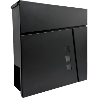 AmazonSpacious: letterbox with newspaper compartment and slot for mail up to DIN C4 size Weatherproof: Sturdy wall-mounted mailbox made of powder-coated iron in black – with rain shield Secure: Lockable mailbox with front lock - 4 keys for family members Practical: Wall-mounted mailbox with screws, plugs, and spacers - ready for easy installation Details: Letterbox dimensions HxWxD: approx. 37.5 x 37 x 10.5 cm - Window shows if mail has arrived