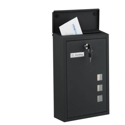 Relaxdays letterbox with viewing windows, HxWxD: 40 x 25 11.5 cm, metal, 4 keys, vertical letterbox, black
