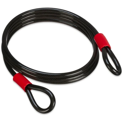 AmazonSecurity: Robust loop cable made of steel - Cable lock length: approx. 3 m - Diameter: approx. 12 mm Function: Use the lock extension in combination with a U-lock, padlock or similar Protection: Weatherproof loop rope with plastic coating - Protects against abrasion and scratches Bicycle accessories: loop lock as anti-theft device for bicycles, wheels, helmets and luggage All-rounder: safety cable for securing garden furniture, trailers, pushchairs and more