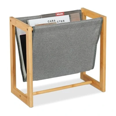 Relaxdays Magazine Rack, Bamboo & Fabric, HWD: 37 x 39.5 21 cm, A4, Newspaper Stand, Catalogue Holder, Natural/Grey
