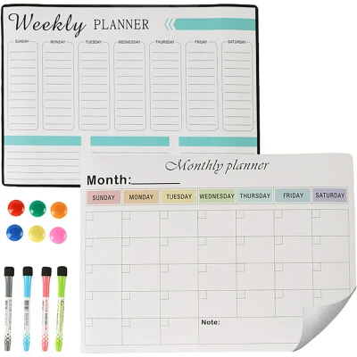 AmazonOrganised: fridge weekly and monthly planners – always keep track of appointments and tasks Magnetic: 2 slim A3 whiteboards with strong magnets - securely attach to the fridge Wipe-clean: Magnetic boards with PET film are easy to wipe - Reusable family planner Complete: Ready-to-use whiteboard planners with 4 markers and 6 round magnets Versatile: Flexible magnetic calendars for cleaning, meal prep, or study – planners for daily use