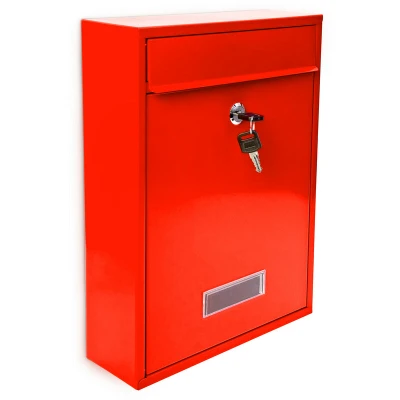 Amazon MarketplaceMinimalistic and elegant design with choice of 4 colours Letter slot and lockable door, name plate in front Includes 2 keys and assembly materials for wall-mounting (screws and wall plugs) Material: Sturdy laquered metal - Colour: Red Size: approx 26.5 x 35 x 8.5 cm (10.4 x 13.8 x 3.3 in)