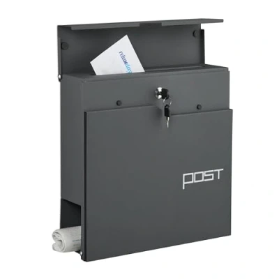 Modern: Letterbox with newspaper compartment and decorative post sign - HxWxD: 38 x 37 x 12 cm With key: Lockable postbox with concealed cylinder lock - Includes spare key Large: Newspaper box for envelopes up to C4 size - Wide letter slot with rain cover flap Design: Mailbox made from powder-coated steel with a modern pattern - elegant matte anthracite look Wall mounting: Durable wall-mounted letterbox for home installation – 4 holes for secure attachment