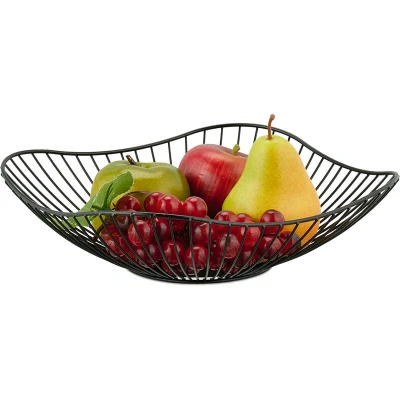 General description The Relaxdays Metal Fruit Bowl is a stylish and functional accessory for your kitchen or dining area. With its modern matte black finish and low wire design, this fruit basket not only enhances the aesthetic of your space but also keeps your fruits and vegetables fresh. Its open grid design allows for good air circulation, making it an ideal choice for serving juicy fruits at gatherings or simply displaying them on your table. Technical specifications Total size H x D: approx. 7.5 x 27 cm Inner size of the bowl H x D: approx. 7 x 26 cm Weight: approx. 250 g Material: Iron Colour: Black Usage Perfect for displaying fruits and vegetables on the dining table Great for serving guests at buffets or dinner parties Can be used as a decorative piece in various interior styles Other information Included in Delivery: 1 x metal fruit basket (decorative items not included)