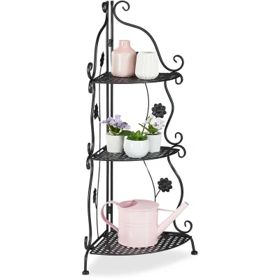 Relaxdays Metal Plant Stand, 3 Tiers, Decorative Rack, Indoor & Outdoor, HxWxD: 82.5 x 31 cm, Corner Shelf, Black