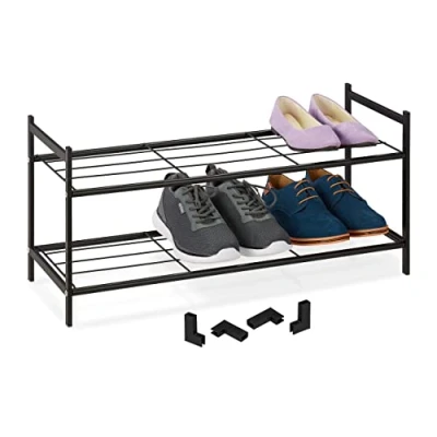 Relaxdays Metal Rack for Hallway, 2 Levels, Stackable, HWD 33.5 x 70 26 cm, 6 Pairs of Shoes, Open, Steel, Black