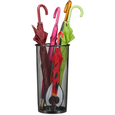 Relaxdays Metal Umbrella Stand, Walking Stick Holder, Mesh, 26cm Ø, 50 cm Tall, Black