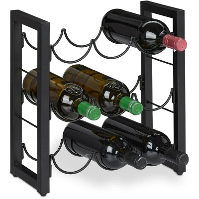 Relaxdays Metal Wine Rack, 9 Bottles, HxWxD: 37 x 35 17 cm, Free Standing Holder, Drinks Shelves, Kitchen & Bar, Black, 43.5 34.5 6 cm