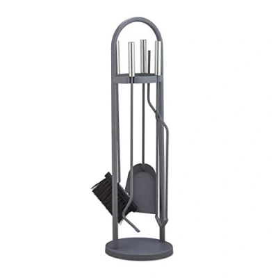 Amazon MarketplaceFireplace tool set: 5-Piece set with broom, shovel, tongs, poker and stand For a crackling fire: With tongs for placing logs in the fire - Hook for stoking Solid: Made of steel with stainless steel handles - Heatproof and durable set Modern: Grey fireplace accessories in linear design - The fireside tools make for an eye-catching Details: Poker and tongs: app. 53.5 cm - Shovel length app. 51 cm - Brush length: app. 53 cm