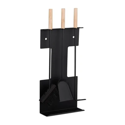 AmazonFireplace tool set: 4-Piece set with broom, shovel, poker and stand For a crackling fire: Hook for stoking the fire - Broom and shovel for cleaning your fireplace Solid: Made of steel with wooden handles - Sturdy, robust and durable kit Modern: Black fireplace accessories in linear design - The fireside tools make for an eye-catching Details: Lengths poker: app. 60 cm - Shovel app. 58 cm - Brush: app. 62 cm