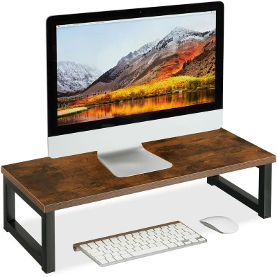 Relaxdays Monitor Stand, Screen Raiser for Desk, Office and Home, HxWxD: 15 x 55 23 cm, Industrial Design, Brown/Black, Alloy Steel Fibreboard