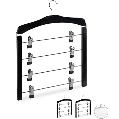 Relaxdays Multi Holder Set of 3, Compact, 360 Swivel Hooks, Clips for Pants and Skirts, Wooden, Black, Wood, 43 x 38 2.5cm