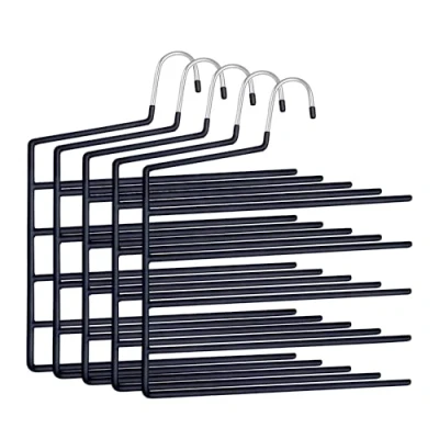 Relaxdays Multi Trouser Hangers, Set of 5, 5 Bars, Non Slip, Space Saving, HxW 35 x 32 cm, Black