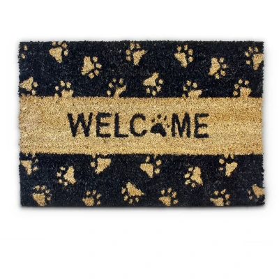 ManoManoThis decorative and practical welcome mat will spice up your doorway and make a statement! The easy to clean coir fibres are highly robust and weather-resistant. They come from a naturally renewable raw material, making the mat sustainable and long-lasting. The underside of the floor mat is made of moisture-resistant rubber, which prevents the mat from slipping during use. The standard size of the welcome mat is suitable for almost all doorways, and the rectangular shape provides plenty of space for shoe wiping. Details on the PAWS Doormat • Size: approx 1.5 x 60 x 40 cm • Weight: approx 1.4 kg • Top side made of natural coir fibres • Rubber (PVC) underside • Anti-slip and moisture-resistant Sustainable Coir Floor Mat for Indoor and Outdoor Use • Coir fibres catch dirt from shoes • To clean, simply beat the dirt out • Sustainably grown and produced • Chic deco element for any door • Suitable for use inside and outside Included in Delivery • Coir doormat • Decorative items shown in