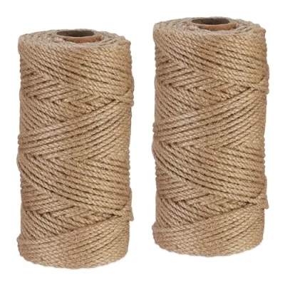 Relaxdays Natural Rope, 2X Set, Jute, Plant, Twine, Handicraft, Garden Decorations, Hessian Thread, 4mm Thick, 100m Long, 19 x 9.5 cm