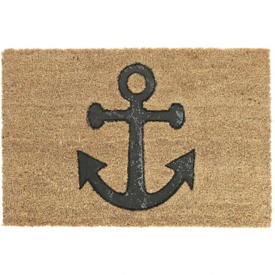 Relaxdays Nautical Anchor Doormat Coir, 40 x 60 cm, Door Mat Inside & Outside, Non Slip, Rectangular, Coir/Black