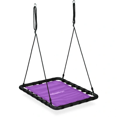 Relaxdays Nest Swing, Rectangular, Kids & Adults, up to 100 kg, WxD: 77 x 103 cm, Outdoor, Height Adjustable, Purple