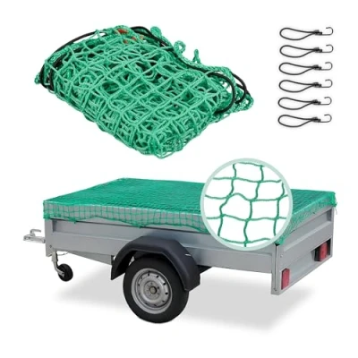 AmazonEffective load securing for car trailers: properly secure your car and transport your load safely Trailer net dimensions: approx. 1.5 x 2.2 m Material and colour: In green, made of PP and rubber Ideal fit: Fits perfectly due to its flexible material Easy to store - Simply fold up when not in use