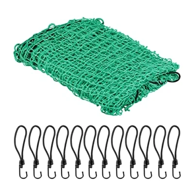 General description With the Relaxdays Trailer Net, you can protect cargo on car trailers from slipping or falling out. The robust safety net is made of tear-resistant, weatherproof material, ensuring durability and reliability during transport. Technical specifications Dimensions: approx. 3 x 4 m Weight: approx. 2.2 kg Material: plastic (PP), rubber Colour: green Mesh width: approx. 4.5 x 4.5 cm Hook dimensions: approx. 4.5 x 2.5 cm Net cord thickness: approx. 4 mm Edge reinforcement thickness: approx. 6 mm Compatibility and accessories Includes 12 expander hooks for additional fastening Installation Easy attachment with surrounding rubber cord Practical corner markings for quick location and attachment Usage Designed for securing cargo on car trailers Provides optimum hold with tensioning rope and edge reinforcement Other information Included in delivery: 1x trailer and luggage net, 12x fastening hooks Decorative items not included