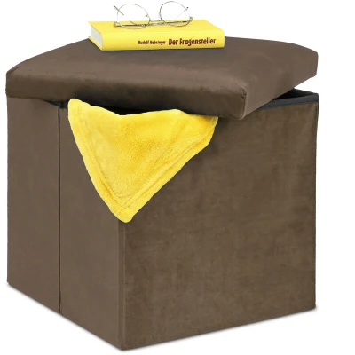 Relaxdays Ottoman, Stool with Storage, HWD 38 x cm, Foldable, Cushioned Velvet and MDF, Brown