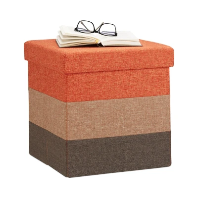 Relaxdays Padded Storage Ottoman, Colourful, Striped Seat, Folding Footstool HWD: 38 x cm, Orange Brown, Polyester