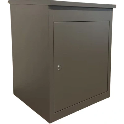 Amazon MarketplacePractical: parcel box for easy receipt of parcels and other deliveries in your absence Details: Dark grey mailbox made of powder-coated iron – HxWxD: approx. 56 x 45.5 x 44 cm Security: Lockable mailbox with 4 keys - Flap for parcels to prevent theft Outdoor: The parcel box is rustproof and weatherproof – for long-term outdoor use. Versatile: parcel box with fixtures for wall or ground mounting