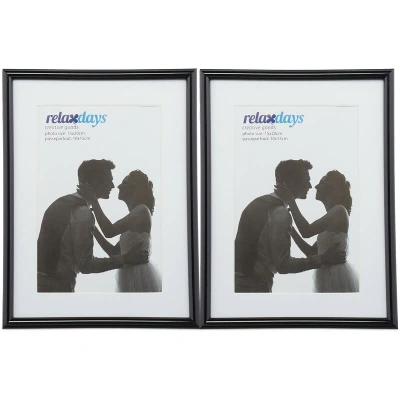 Relaxdays Photo Frame Set of 2, 15 x 20 cm, Passepartout 10 Standing or Hanging, Black, 50% plastic 40% glass 10% fibreboard