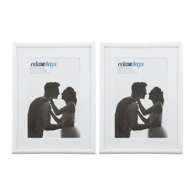Relaxdays Photo Frame Set of 2, 15 x 20 cm, Passepartout 10 Standing or Hanging, White, 50% plastic 40% glass 10% fibreboard