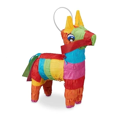 Animal piñata: Donkey piñata as a highlight at the next birthday party - Fun for children and adults Unfilled: Decorative piñata for self-filling - Ideal for candies, toys or confetti Party game: Hit the piñata blindfolded until it bursts open Decor: Unique party decoration for birthday parties, school celebrations and more! Details: Dimensions of the piñata HxWxD: approx. 19 x 13 x 5.5 cm - Made of paper and cardboard
