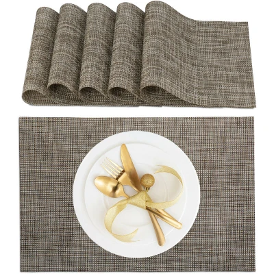 Relaxdays Place Mat Set, 6X Coaster, Tableware, Drinks, Table Protector, Square, 45 x 30 cm, Polyester, Stylish, Brown, 0.1 cm