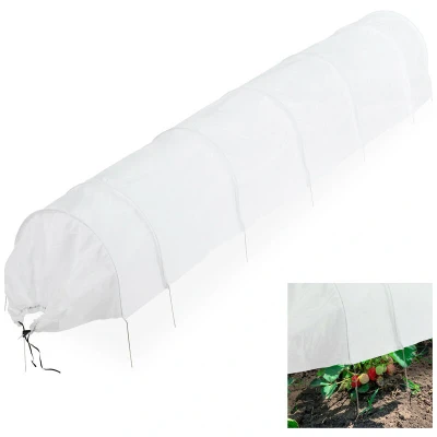 General description Don't worry about nibbled lettuce or missing strawberries; protect your harvest with the reliable Relaxdays Plant Tunnel. This effective solution keeps large and small pests, such as birds, insects, and snails, away from your fruit and vegetables. Technical specifications Tunnel length: approx. 340 cm Tunnel arch dimensions (H x W): approx. 53 x 50 cm Weight: approx. 0.8 kg Material: Fleece, iron Colour: White Installation Assembly and disassembly is quick and easy, as the crop protection net is already pre-assembled on 7 tunnel arches. The fleece tunnel is secured with the provided ground anchors for additional security. Usage This plant tunnel is designed to cover one row of beds, providing effective protection for your vegetables and ensuring you can enjoy tasty fruit and vegetables without bite marks.